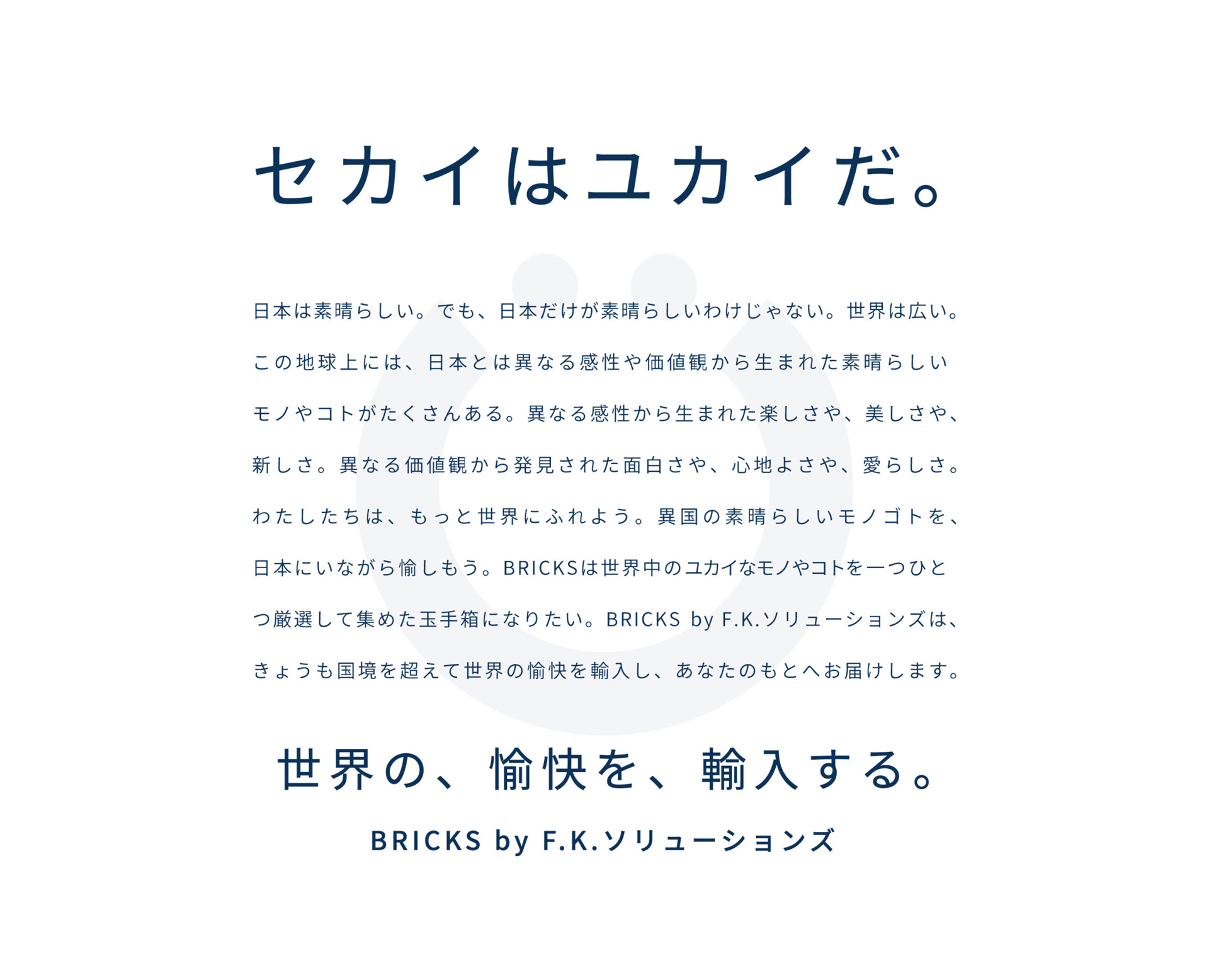 ブランドコンセプトは「世界の、愉快を、輸入する。」。