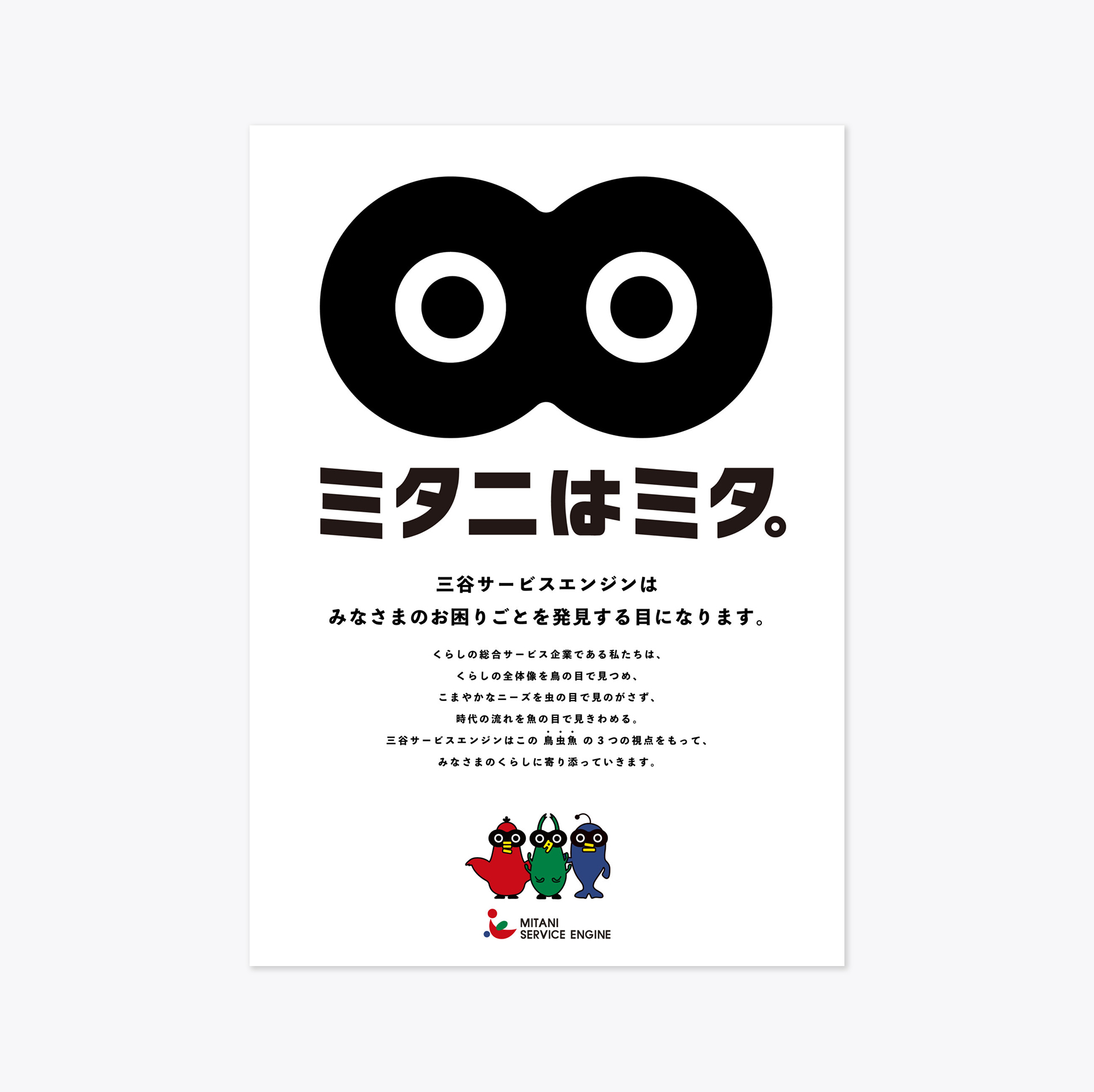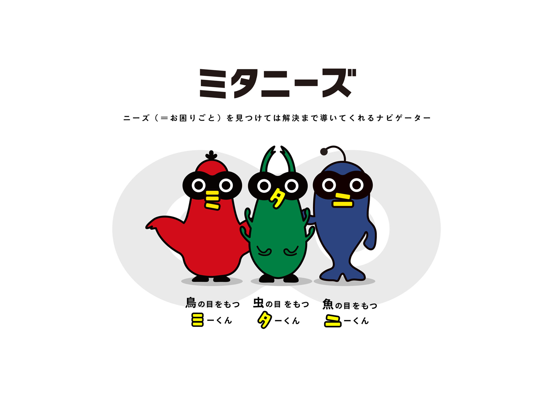 鳥の目・虫の目・魚の目に由来するキャラクターは「ミタニーズ」と命名。