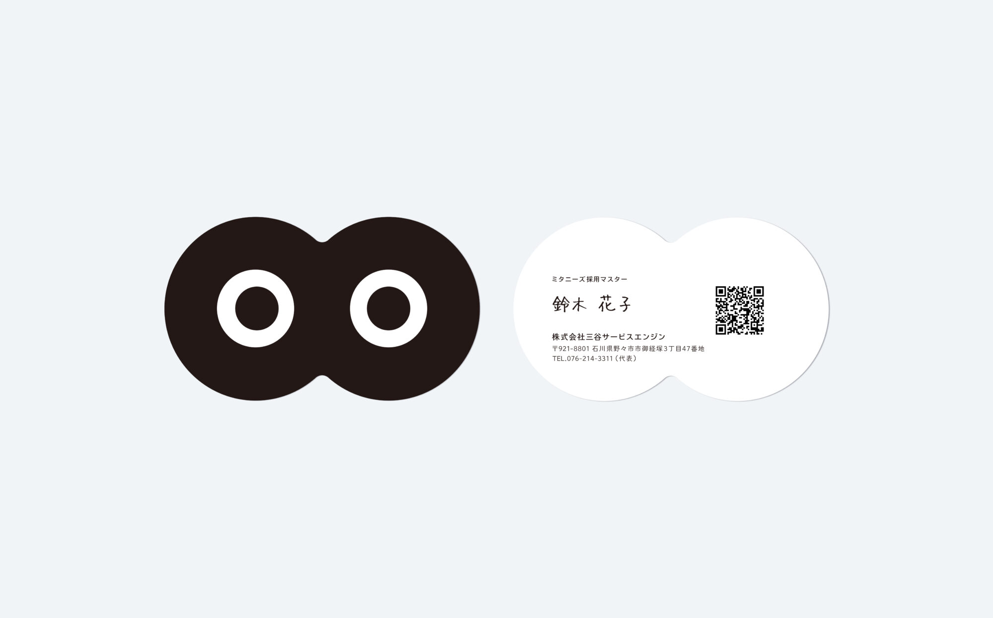 社員の方々は、このキャラクターの目のかたちをした名刺を使用。