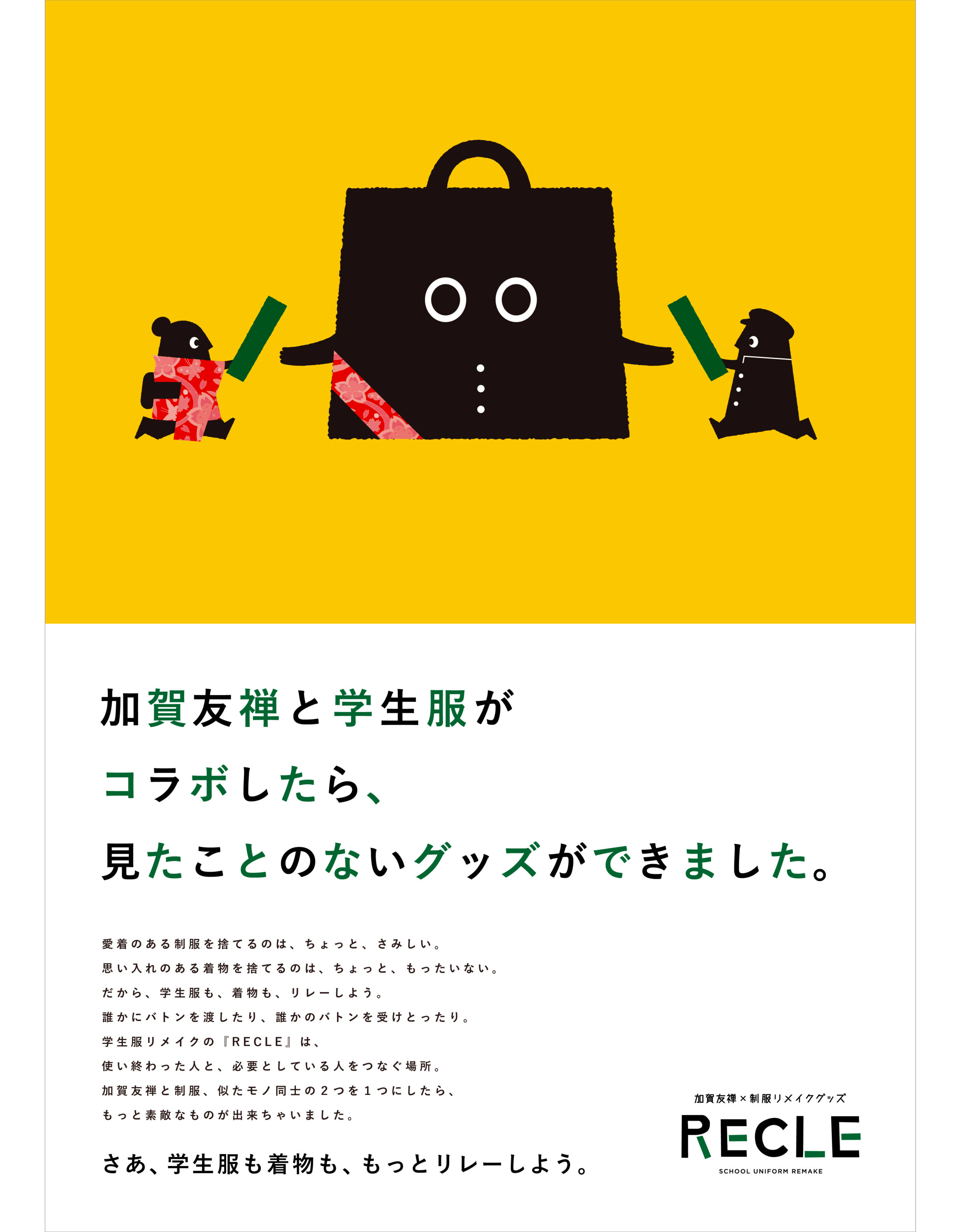「学生服のリユースは学生服のリレーです」というブランドメッセージを掲げました。