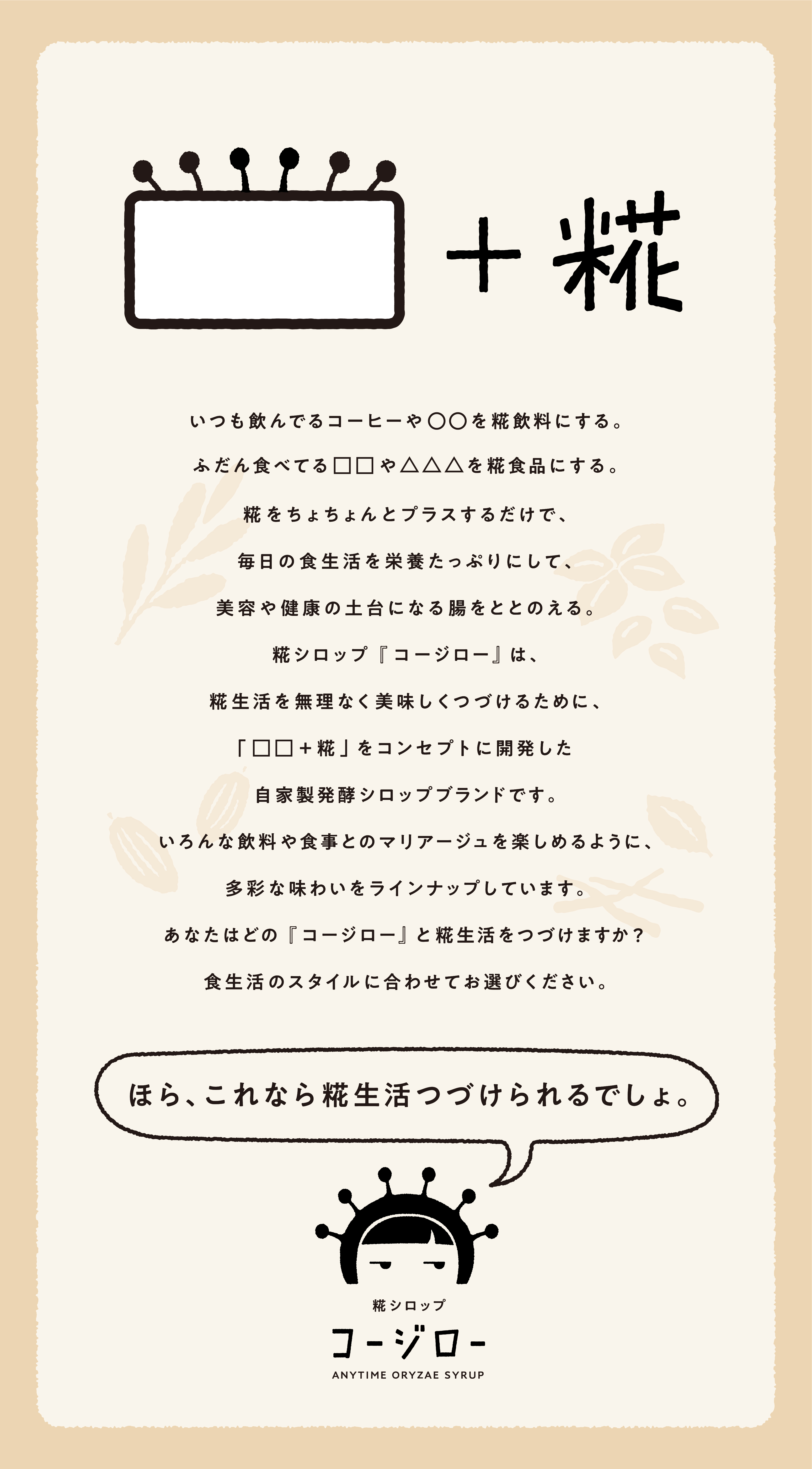 糀シロップ『コージロー』ブランディング|石川県金沢市発のブランド「糀シロップ コージロー」商品開発・ロゴマークデザイン・キャラクターデザイン