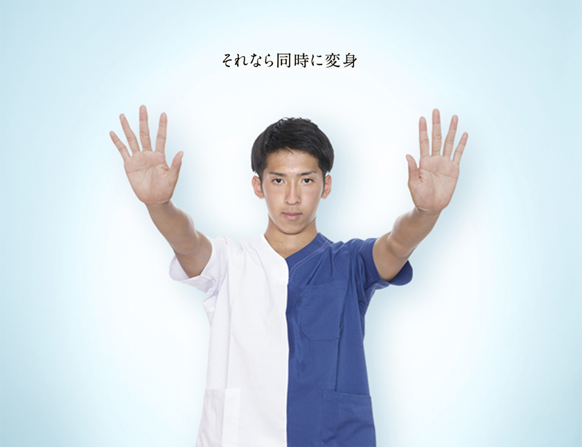 医療保健学部の特徴である“2つの資格を同時取得”を表現したテレビCMや新聞広告などを制作。